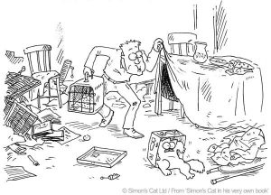 You either drag Ernest from his hiding place because he saw the carrier, or sneak up on him and grab him so he doesn’t see it. Then you attempt to gently put him in the carrier, but usually have to force him in. Most cats are masters at sticking just enough paws out to prevent entry, no matter which way you turn them. Once in, he then gets jostled and swung around on the way to the car. Add to that, the swerving, bumpy car ride and the treetop whizzing view out the window and it’s a miracle if Ernest hasn’t peed, pooped or vomited in his carrier. Once you get to the vet’s office, there is a waiting room full of sounds, smells, strange dogs, cats and humans.